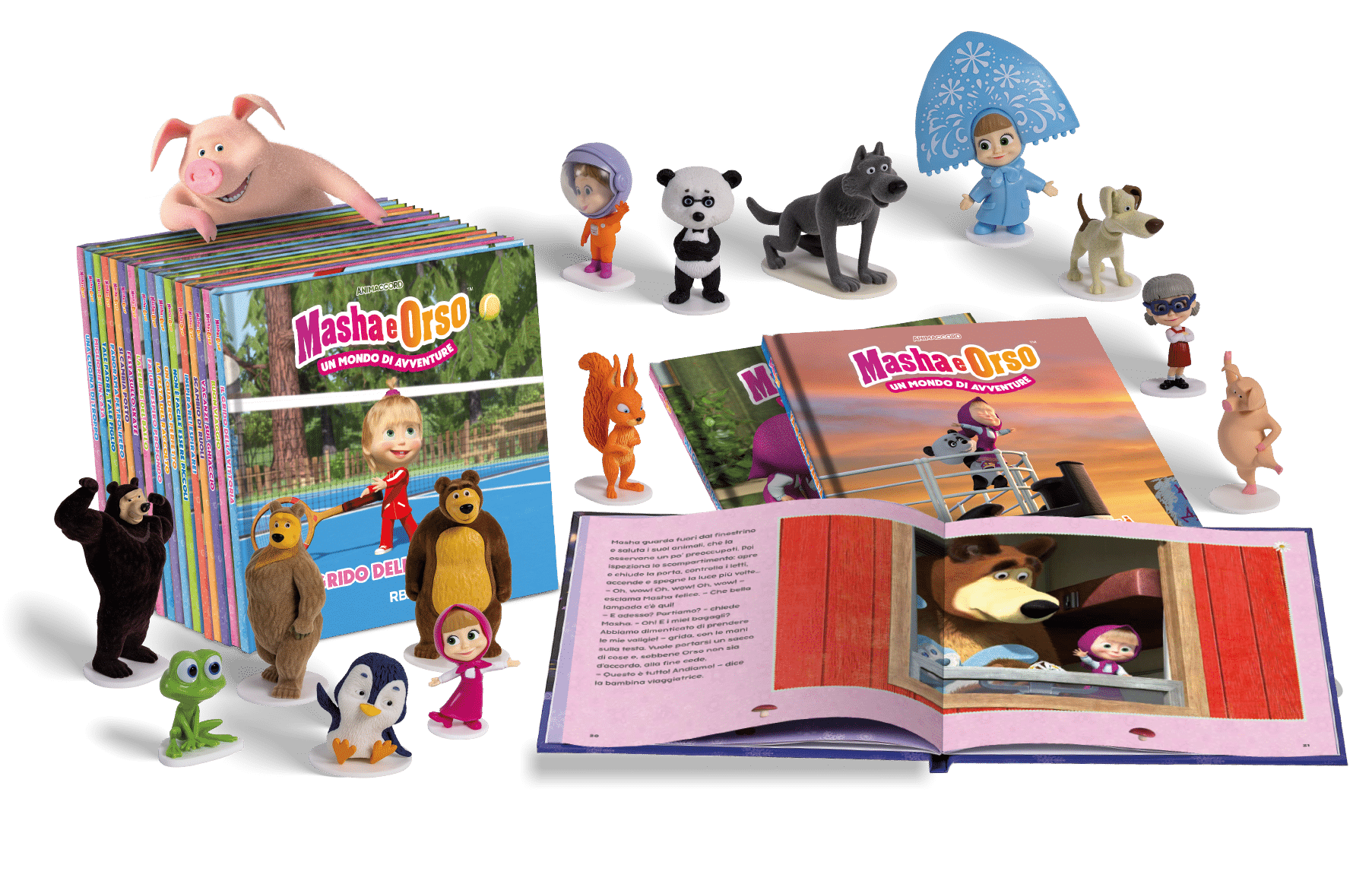 Con Masha e Orso i più piccoli di casa leggeranno le storie, rivivranno le avventure della loro serie animata preferita e si divertiranno a giocare con i simpatici personaggi.